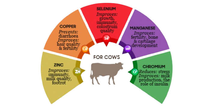 Selenium, copper, cobalt, iodine, and magnesium can all affect cow health. Milk production can result in the levels of these trace minerals declining in the blood and liver, especially if supplementation is not effective.